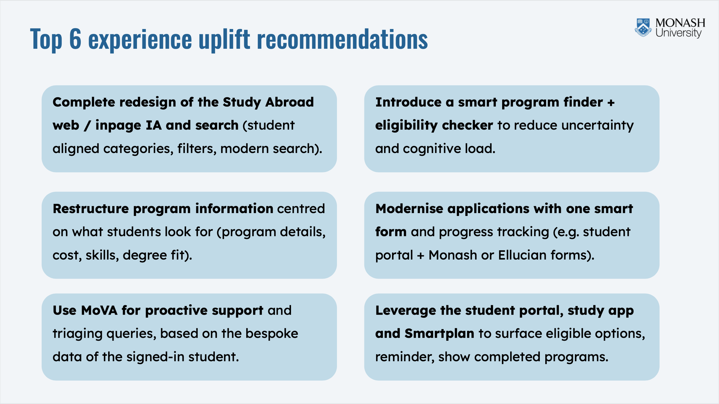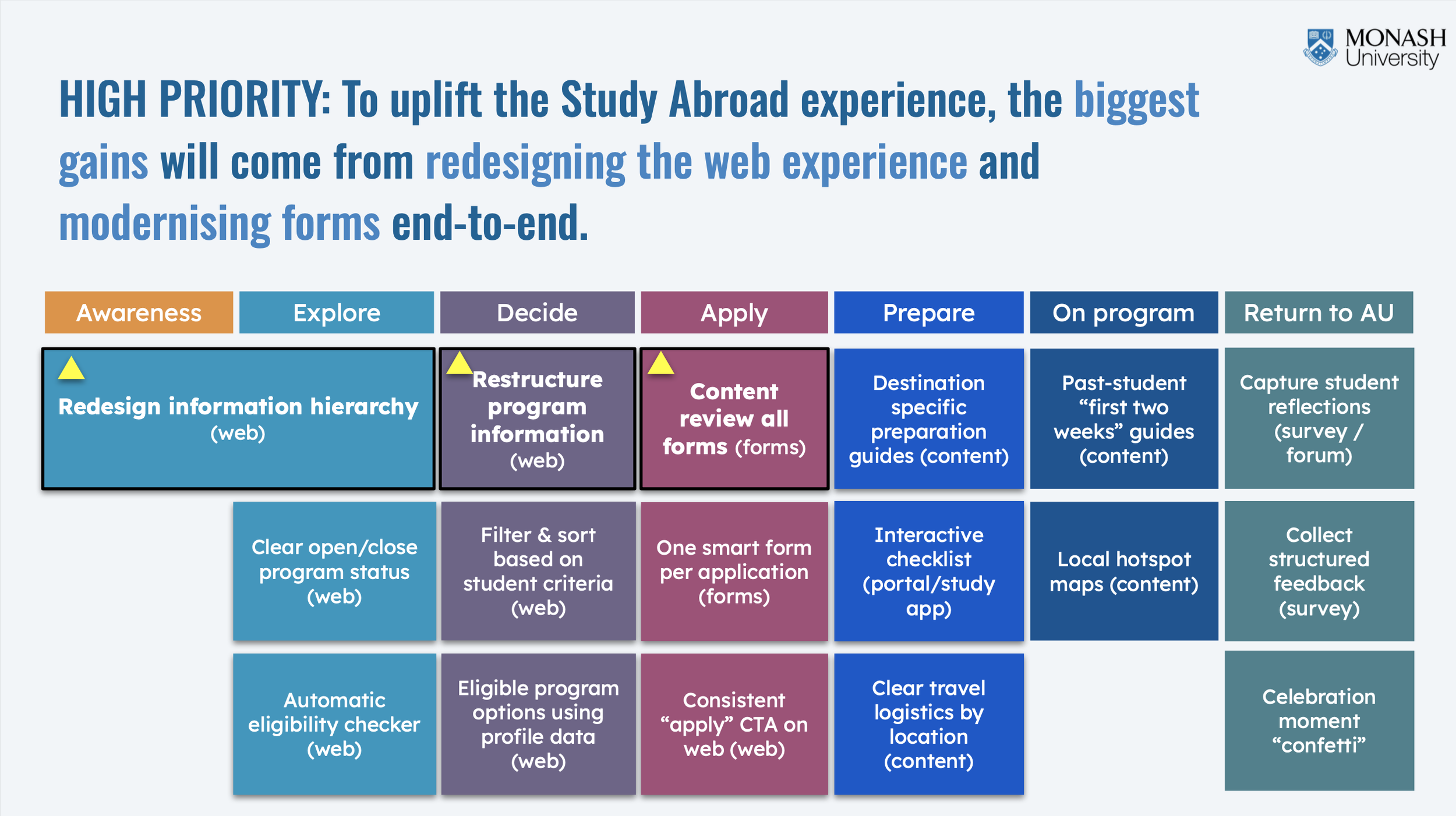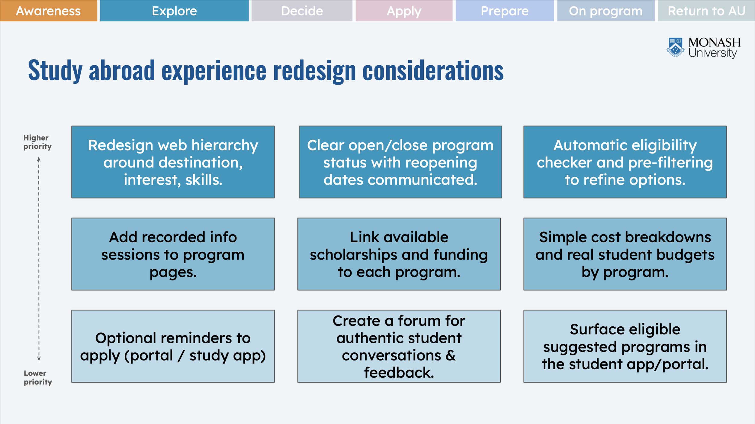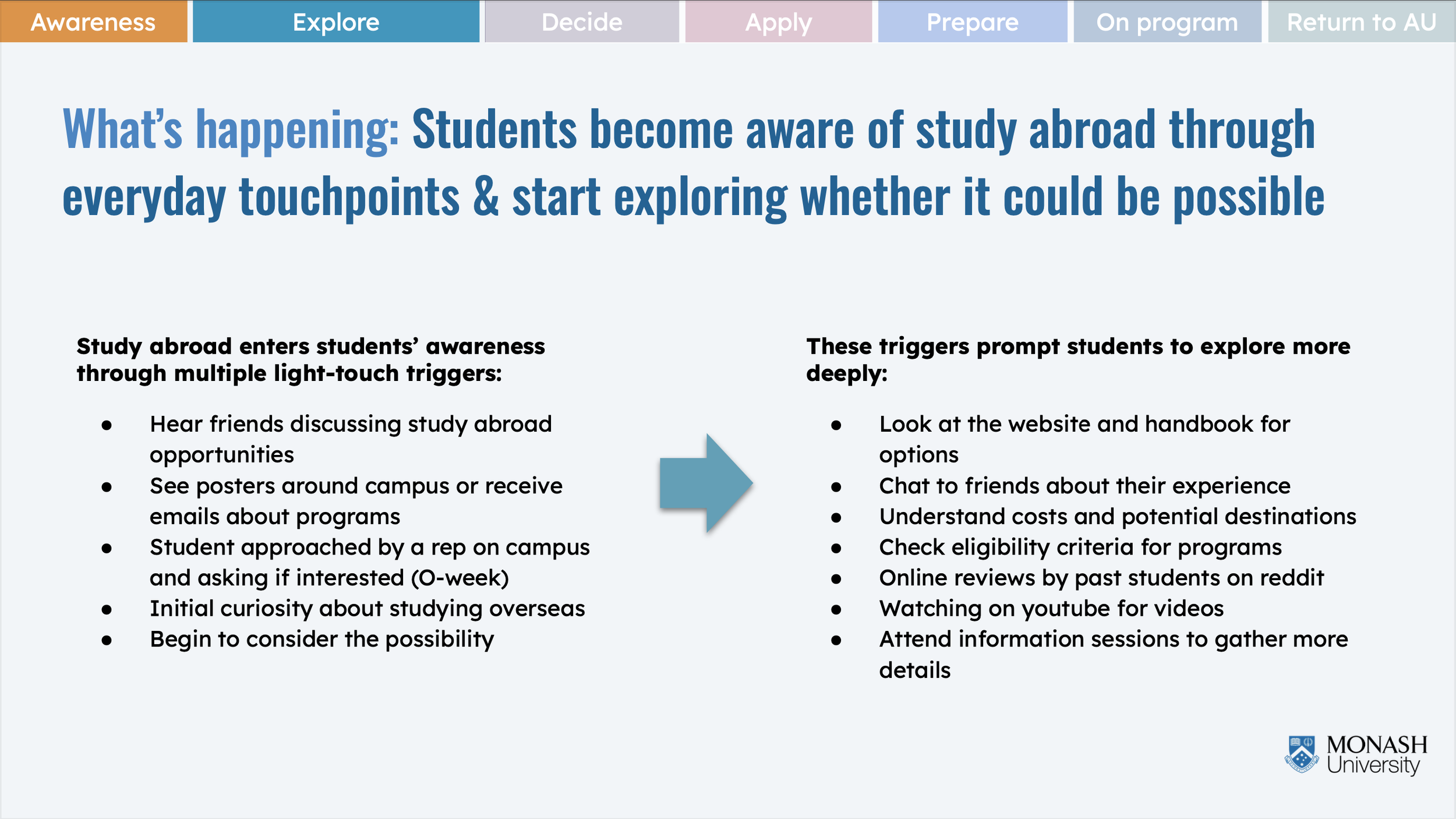 Web Journey review of key pages in flow (monash.edu)
