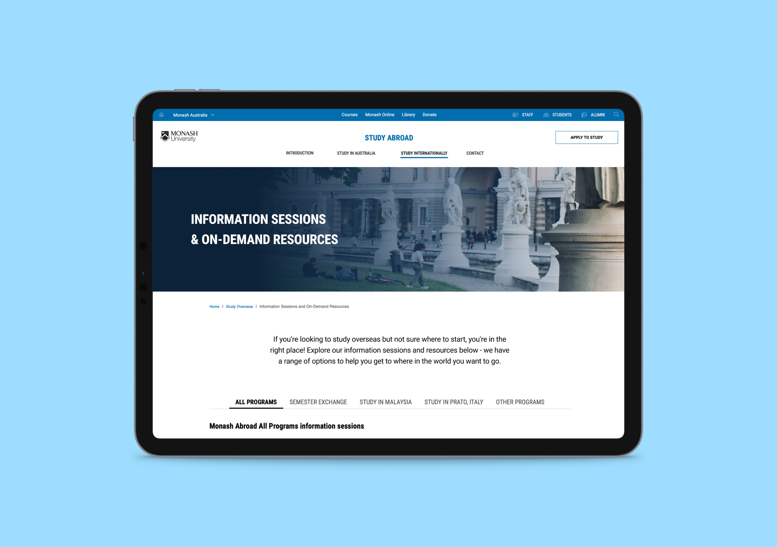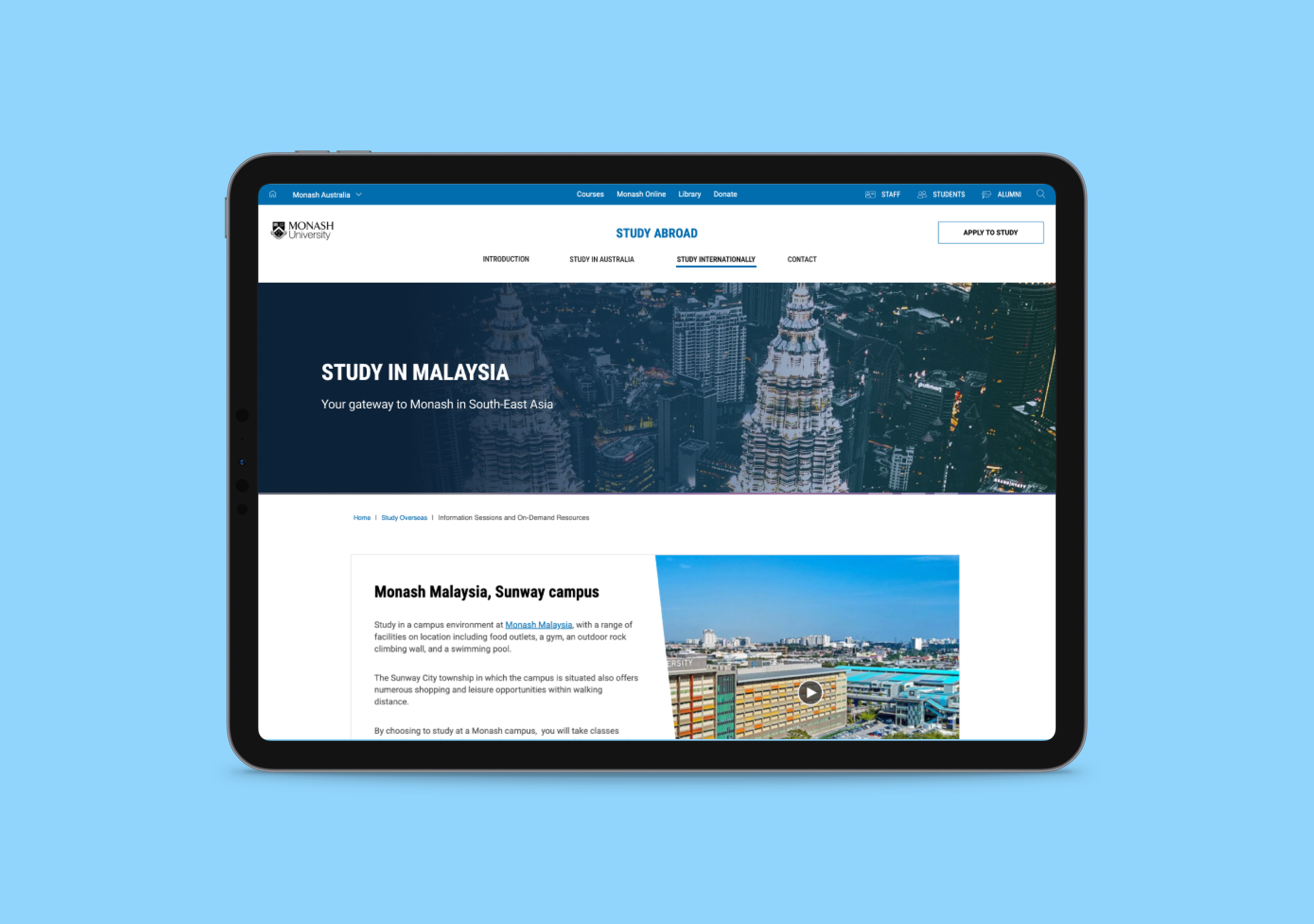 Study at Monash Malaysia Campus Details page