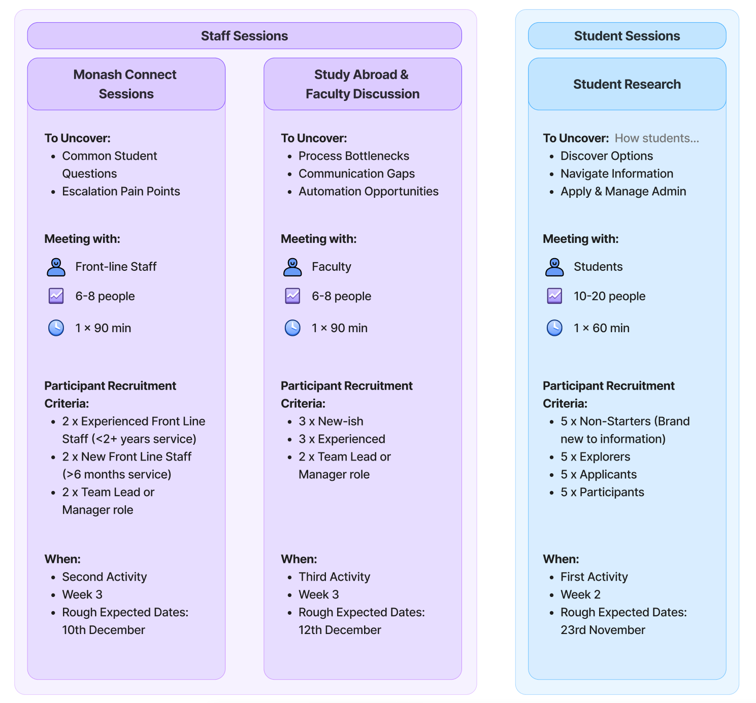 Plan for the User Sessions key research demographic touch points