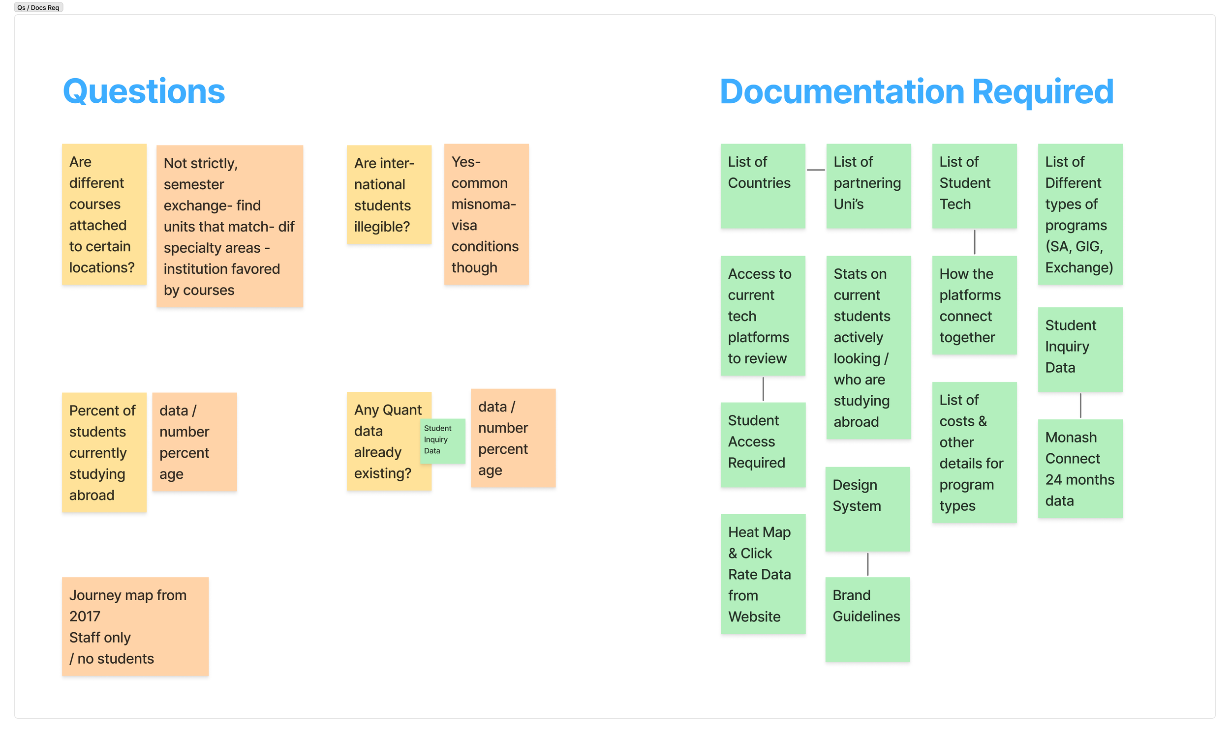 Main Questions I had for the team (with answers) and documents to gather