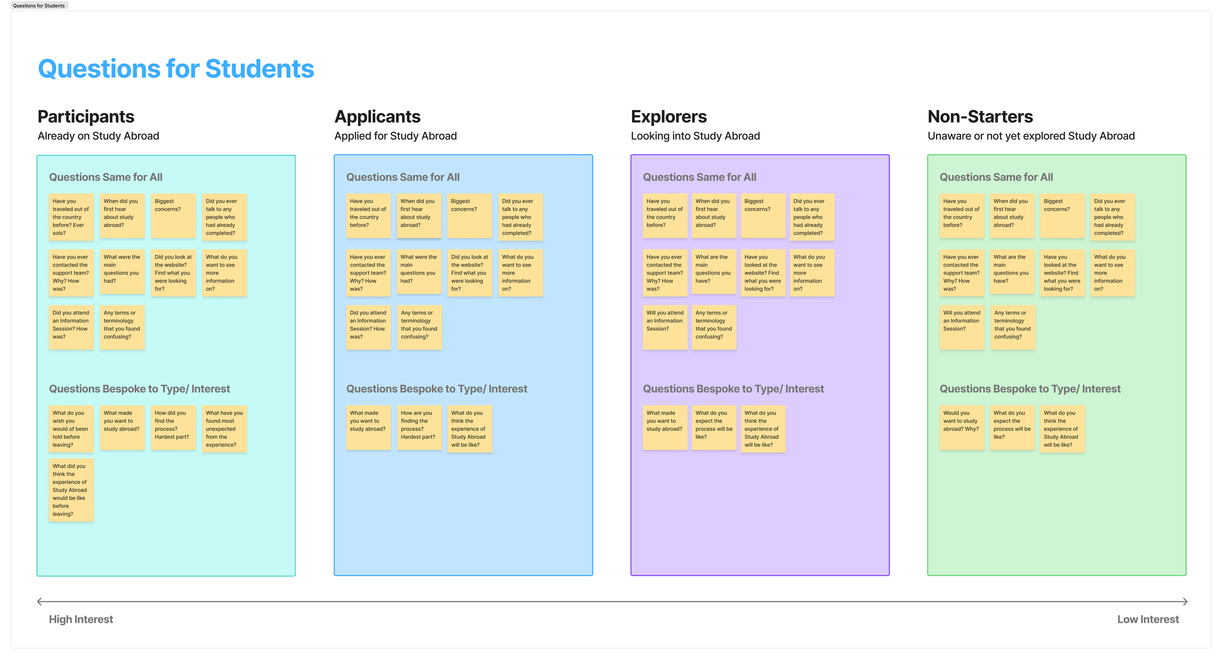 The 4 Student types identified (Participants, Applicants, Explorers and Non-Starters) and questions set created for all